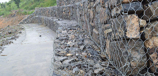石籠網(wǎng)是使用機器將金屬線材單向搓捻兩周編織的六角形網(wǎng)(六角網(wǎng)) 制成的網(wǎng)箱,厚度在0.15-0.5m(含0.5m),又稱石籠和護(hù)墊,石籠網(wǎng)墊由隔板分成若干單元格,為了加強石籠網(wǎng)墊結(jié)構(gòu)的強度,所有的面板邊端均采用直徑更大的鋼絲。